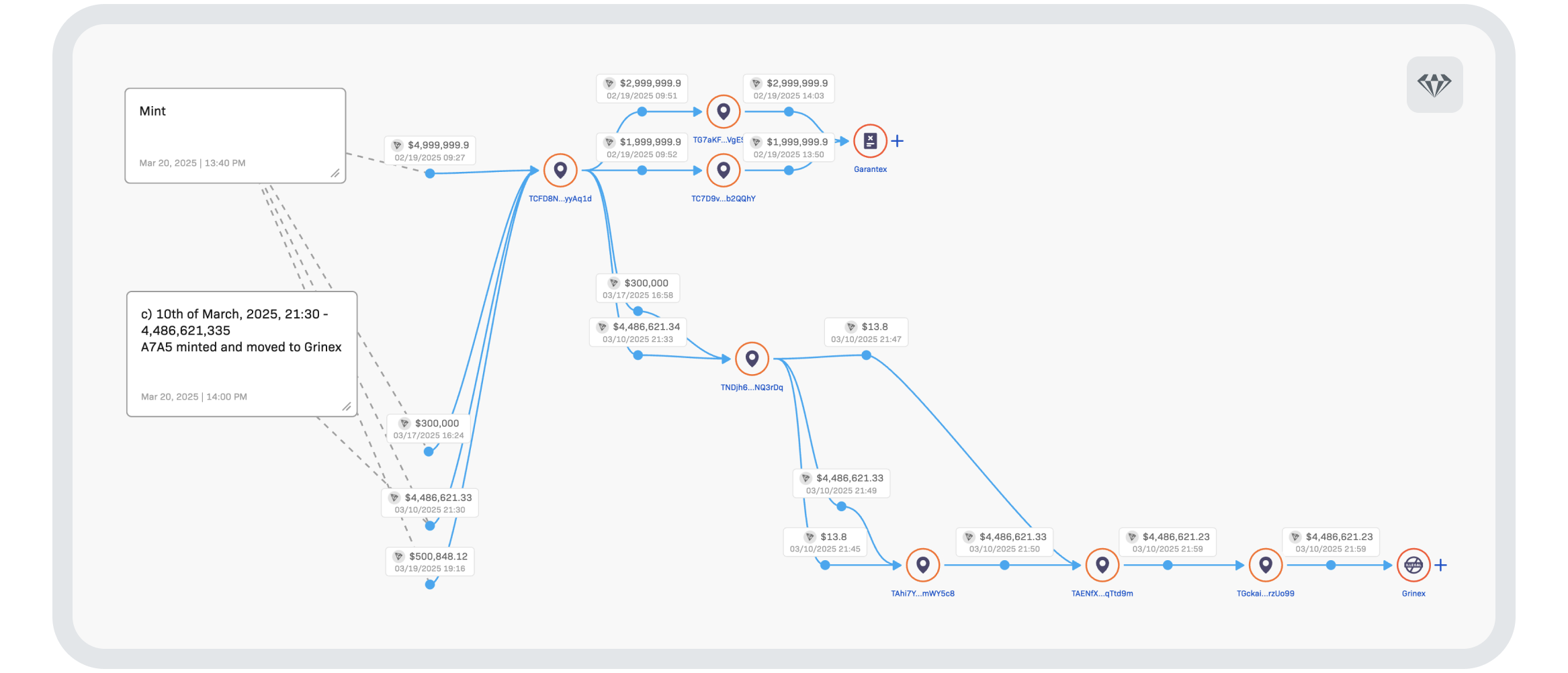 Crystal’s investigative team looked into the matter and has uncovered strong evidence that suggests Garantex’s strategic reinvention as Grinex was carefully planned.