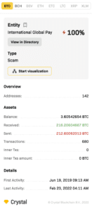 Here, we look at a high-profile case from 2021 – the International Global Pay scam. This case promised enormous returns if users deposited their funds. However, after receiving user funds, International Global Pay never paid it back. Incredibly, the scammers managed to raise over 213 bitcoin (BTC), which amounts to over USD $10 million by today’s prices.