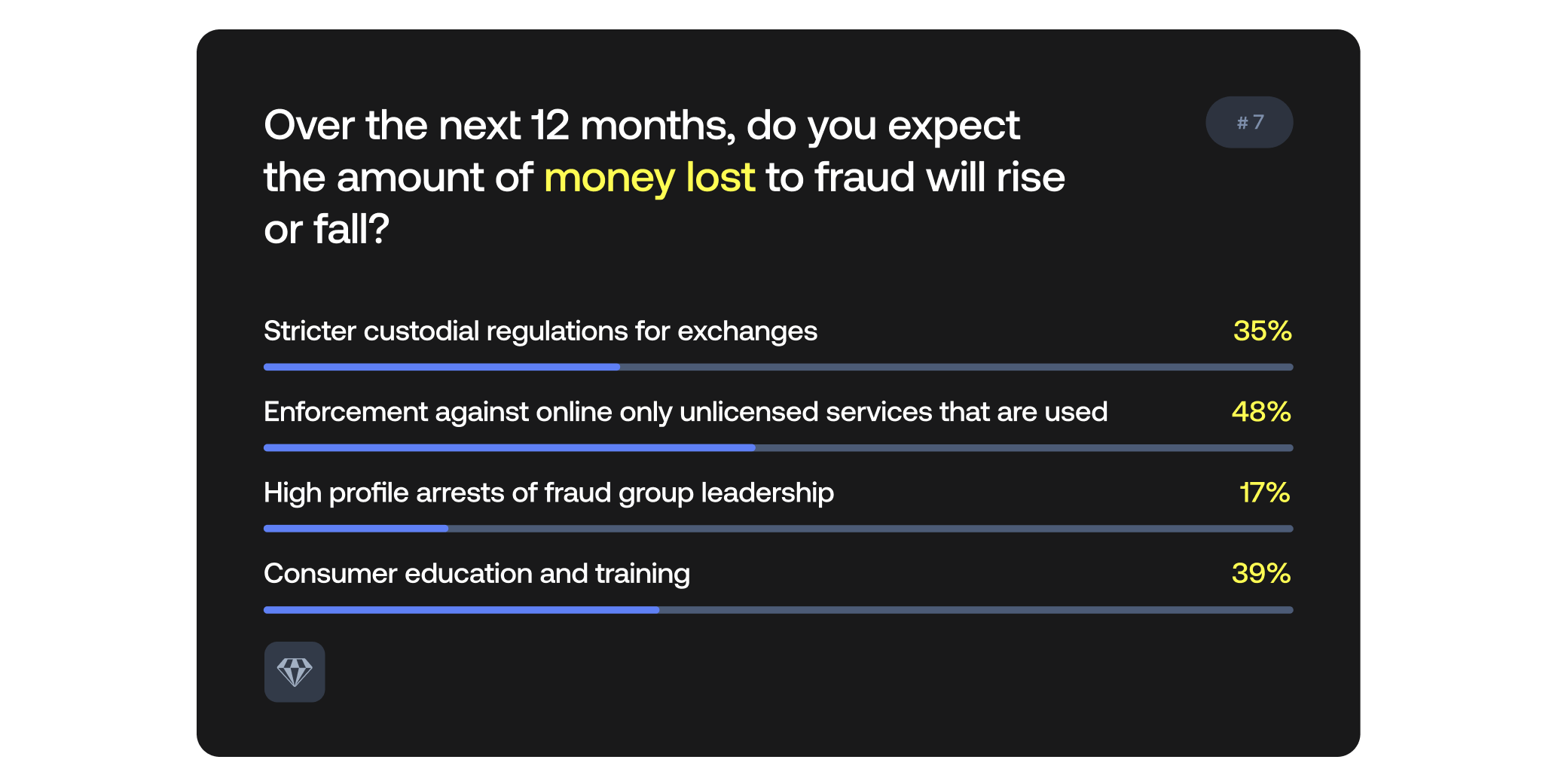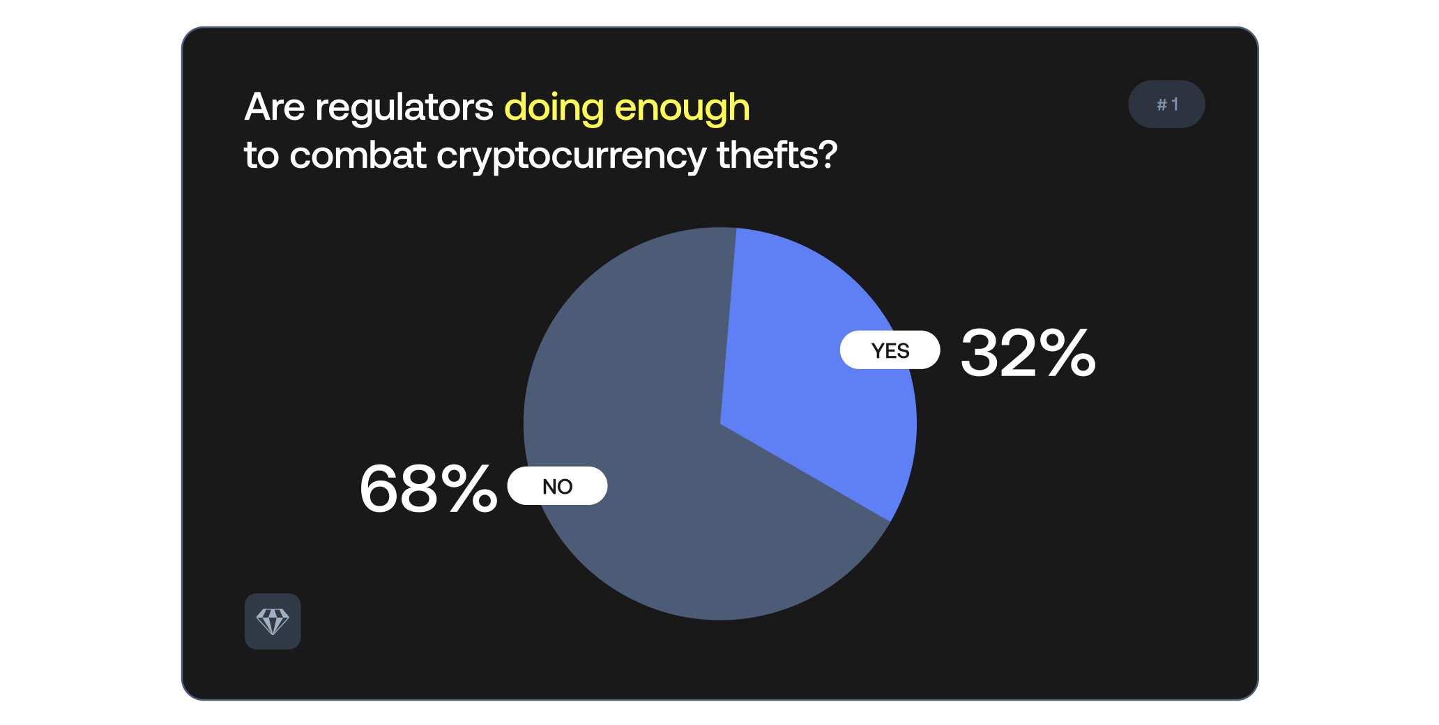 A full 68% of the audience believe that regulators are currently not doing enough to counter crypto thefts