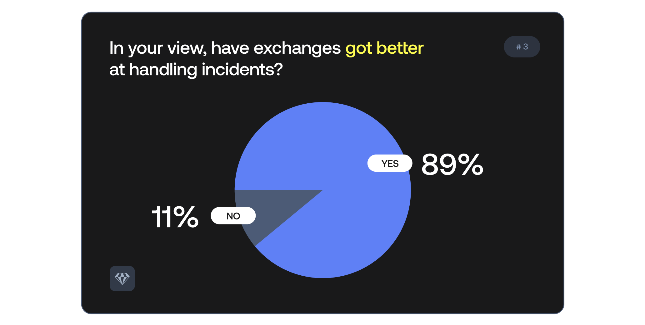89% of respondents believe that exchanges’ ability to respond to incidents has improved over time.