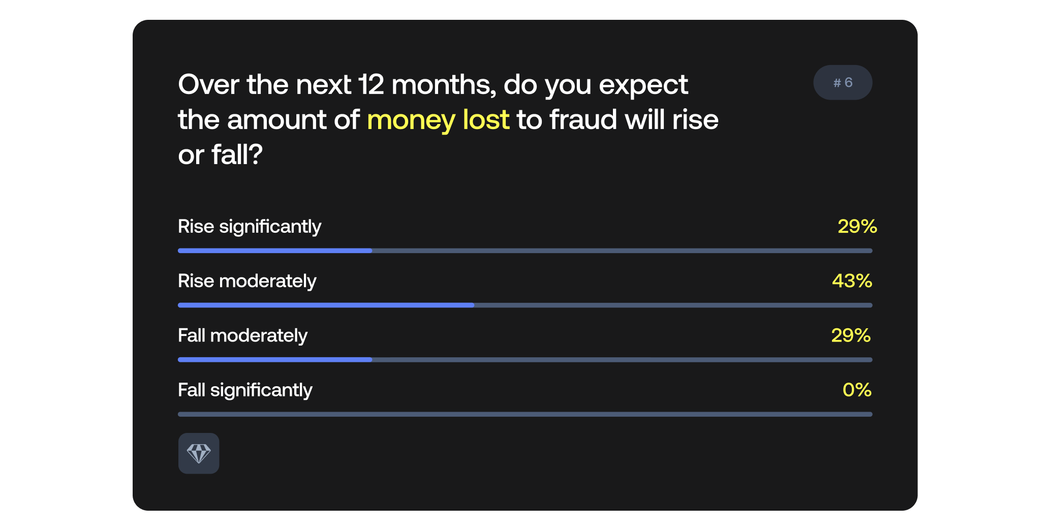 72% of respondents believe that the amount of money lost to fraud will increase in the next 12 months.